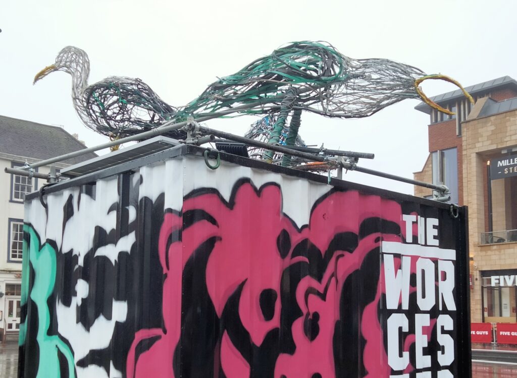 ‘The Gulls’ by Sarah Dukes features three huge gulls made of junk reflecting that, while they are often unwanted visitors, it is the litter and waste we drop that attracts the gulls to our city.